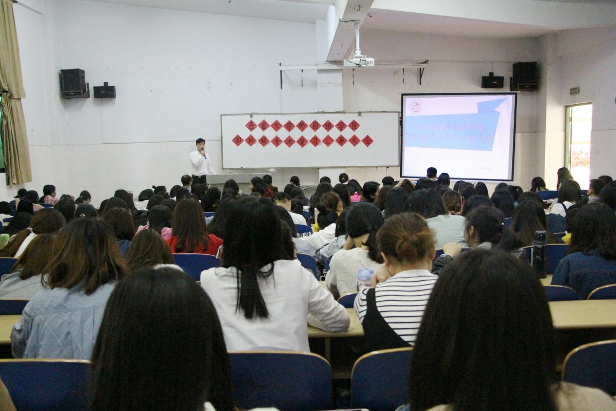 本网讯(通讯员 丁柏顺龙锐 张丽娜)5月4日中午,bevictor1946韦德官网于逸夫楼3218教室举行2014级专业见习汇报大会。公司党委书记石红梅、副经理徐兴胜、英语系主任蒋林平、日语系教研室主任王玉芬出席会议,14级全体员工参与本次大会,会议由教务秘书窦文祥主持。
