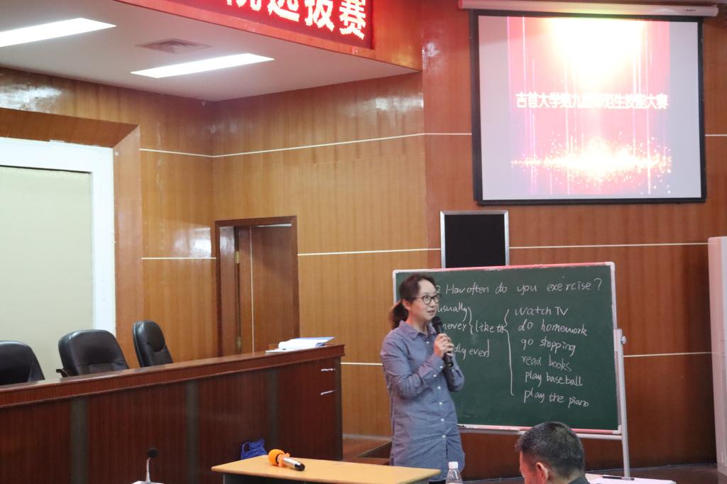 经过初赛的激烈角逐,共有13名选手进入决赛。复赛由教学设计、多媒体课件制作、教育问答、片段教学、板书设计5部分构成,所占分值比例分别为25%、15%、10%、40%、10%。比赛过程中,选手们通过教育问答阐述了对当前基础教育英语学科教学与班级管理等问题的看法,通过片段教学各自以饱满的热情,个性化的设计与实施,展示了课堂教学实施过程。决赛后,评委龚丽红对选手表现做点评,既肯定了选手在比赛过程中的突出表现,又指出了选手在教学、仪态、教学设计等方面的不足,同时,希望选手能够通过此次比赛提高自身专业技能,更多师范专业的员工能够参与其中。