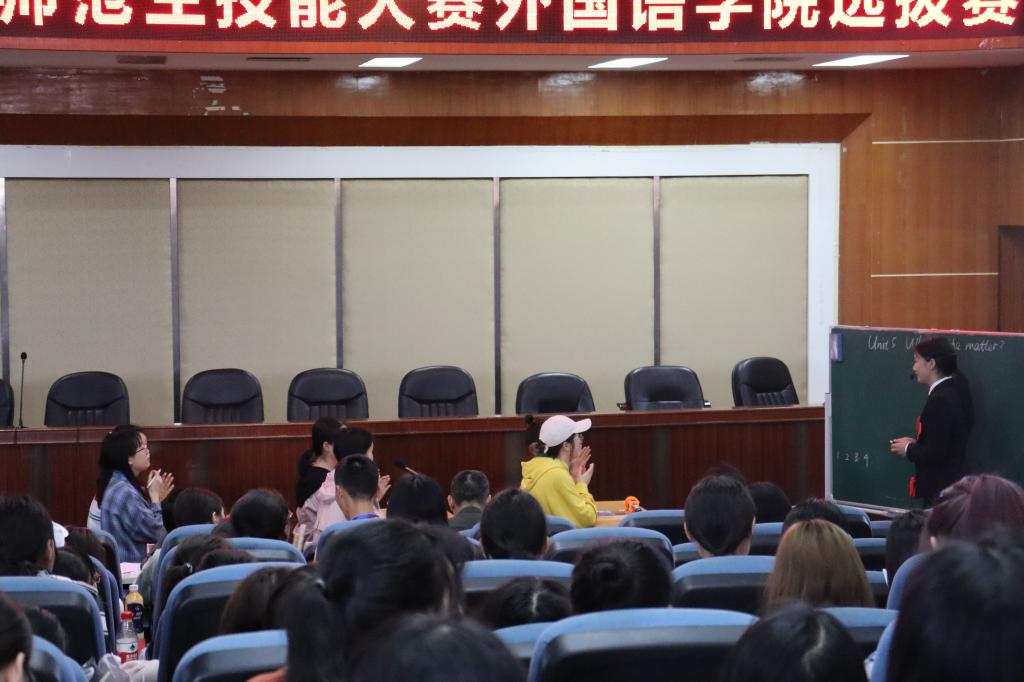 本网讯(通讯员:吴雅格程慧玲 罗丽)5月17日下午15:00,由bevictor1946韦德官网负责、外语协同创新工作室承办的bevictor1946韦德官网2019年师范生教学技能竞赛(英语组)院选拔赛在校区第三教学楼多功能报告厅顺利举行,标志着为期半个多月的师范生教学技能竞赛圆满结束。到场的评委老师有一线教师龚丽红,英语系主任蒋林平,教务办秘书窦文祥。该院各年级英语师范生代表到场观摩。