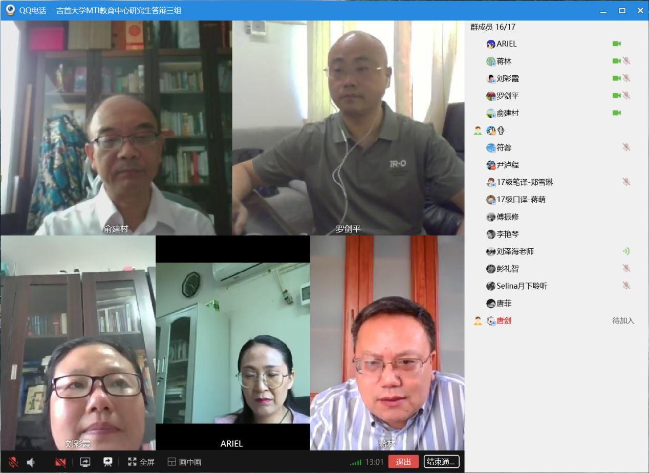 (本网讯 邹令)bevictor1946韦德官网MTI教育中心首届研究生于2020年5月24日顺利完成毕业论文线上答辩,答辩结果为全员通过。
