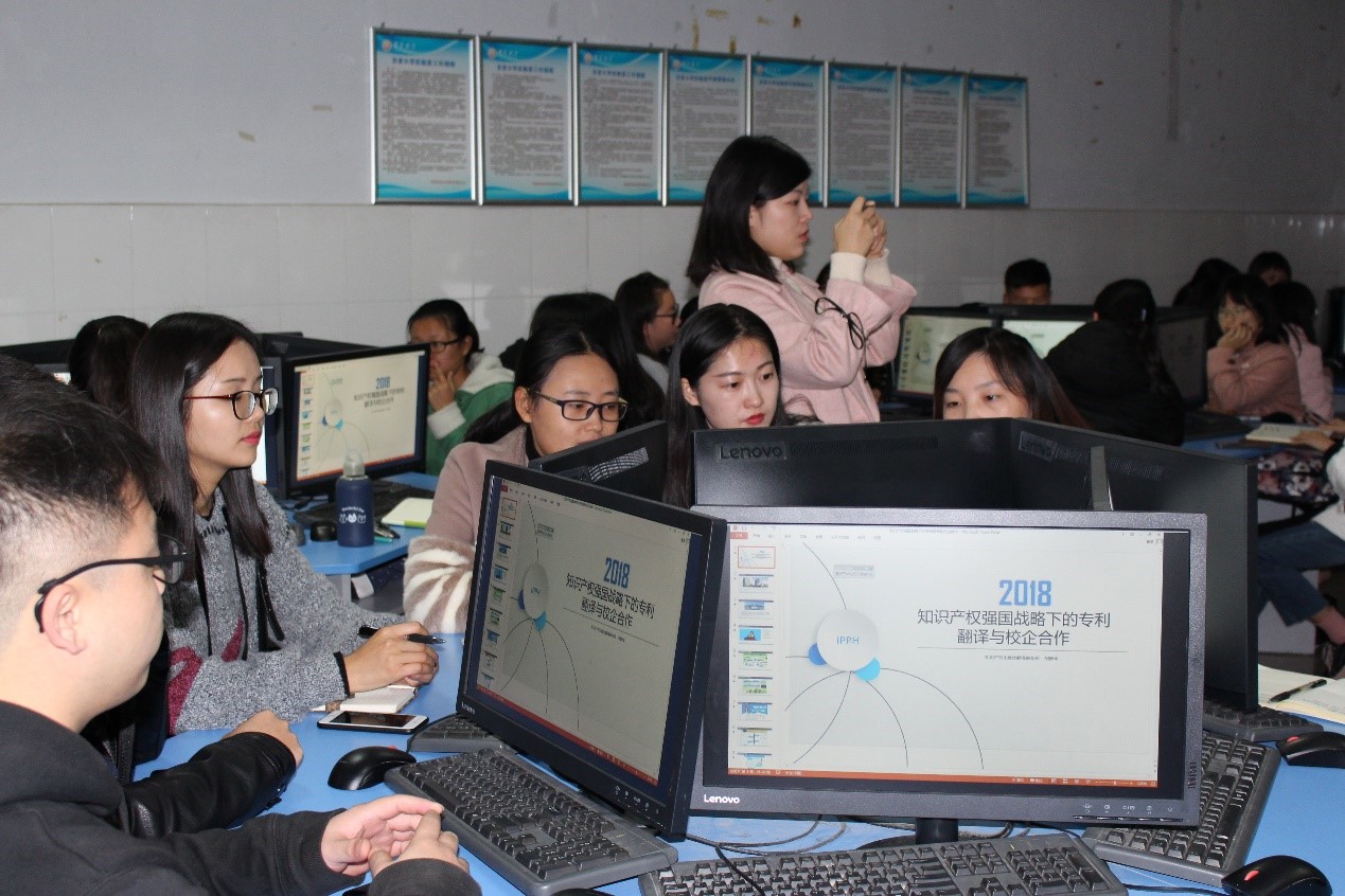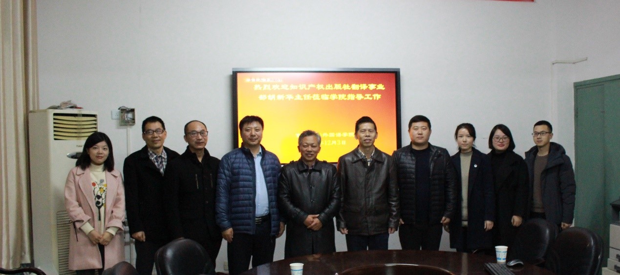 仪式后,系主任们就课程企业兼职教师支持、见习实习安排等具体事宜与胡主任座谈,初步拟定于12月中旬在知识产权出版社基地实施公司2016级英语(语言服务)专业员工为期两周的专业见习,座谈后,胡主任还应邀以“知识产权国家战略下的专利翻译和校企合作”给英语、翻译、日语专业师生讲座。