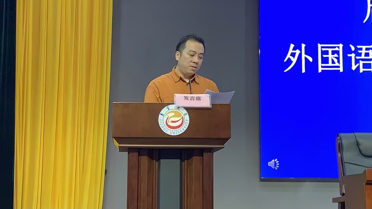 大会伊始,全体起立,奏唱国歌。在校生代表2021级英语(师范)专业张瑞芳首先发言,她分享了自己大学学习和生活经历,鼓励新生们积极融入老员工活,勇于探索和挑战自我。紧接着,本科新生代表2024级商务英语专业贺娜和研究生新生代表24级翻译硕士李金洋分别发言,他们表达了对未来学习和生活的期待与憧憬。教师代表刘锋博士在发言中强调了公司的教育理念和学术追求,鼓励新生们在学术探索中不断进步。外教代表Tu-Kwon Thomas老师通过研究生张婷宇同学的交替传译,向新生们传达了外语学习和具备国际视野的重要性和跨文化交流的价值。