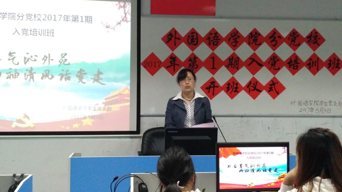 仪式开始,外国语公司党委书记石红梅书记致辞,她强调了党课培训的重要性和必要性,并提出党员必须增强荣誉感和使命感,要求同志们严守党的纪律,端正学习态度。