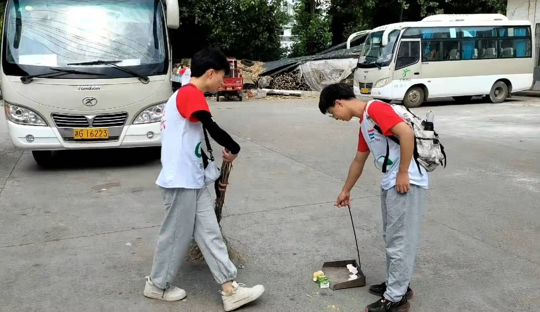 图为志愿者在打扫