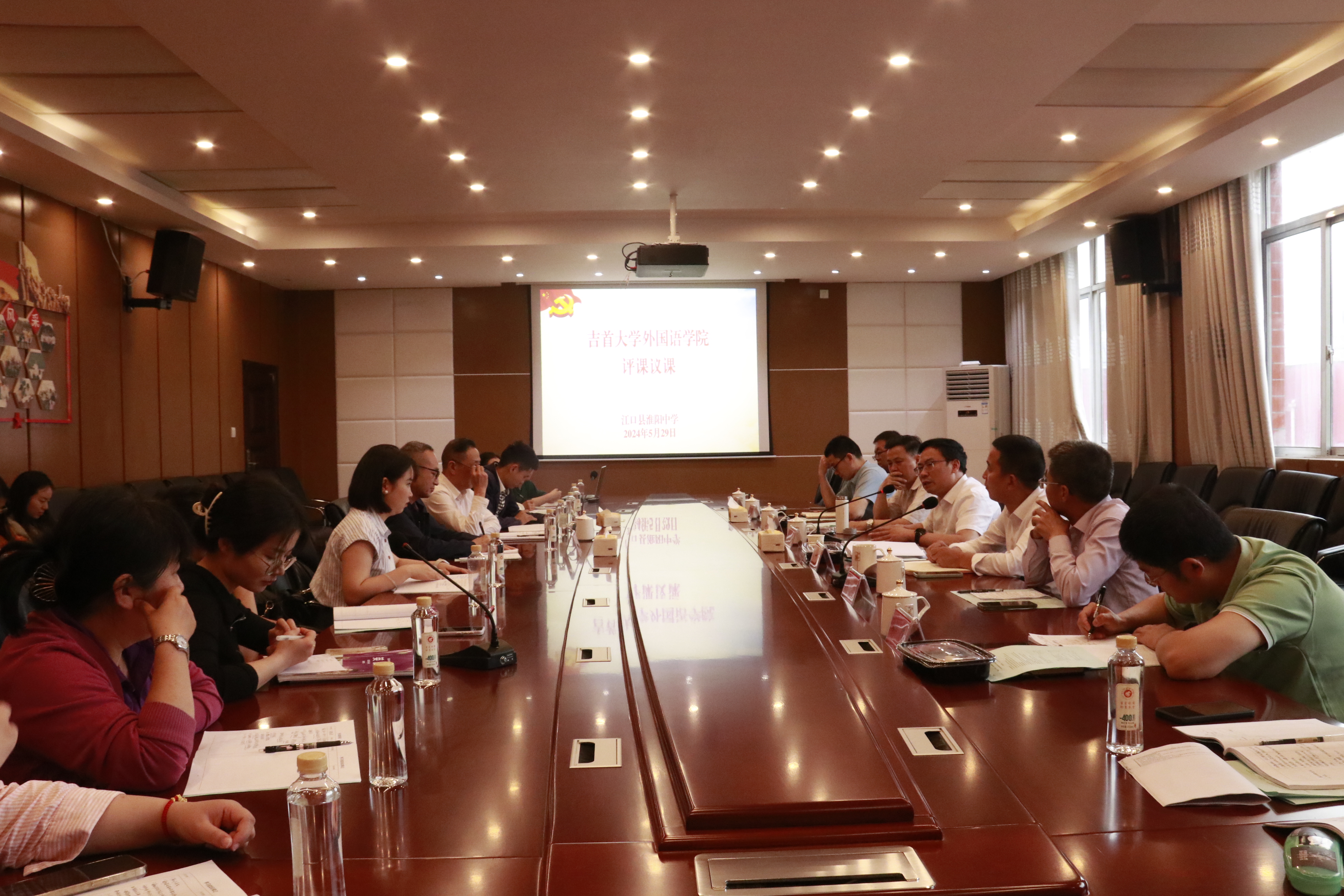 随后,参访组深入课堂一线,听取了该校高中英语教师邓目敏、舒敏两位老师的展示课,全面了解“五环课堂”的整体架构和环节设计,观察员工的学习状态与课堂学习情况。在评议课环节,张家界市民族中学正高级教师、公司中小学外语名师流动站首席专家唐斌对两位老师的授课情况进行了细致点评,在新课程理念指导下从六个维度提出了如何上好英语阅读课及增强课堂实效的宝贵建议。修伟则建议外语教学应高度重视语境创设,尽可能将文本与现实结合,以学习情境本土化、学习体验个性化、学习内容结构化为原则,通过主题、语篇、活动为抓手,实现员工深度学习。简功友高度评价了该校在外语教学与员工外语学习氛围的营造,针对外语课堂教学实况提出了外语课堂多点“聊天”互动,回归语言课堂本色,多点非功利环节,彰显语言学习初心,多点本土化素材,强化语用本体等“三多”建议。通过听评课互动,参访组深入了解到了该校中学英语教学改革的新动向,为公司英语师范人才培养改革获取了重要参考。