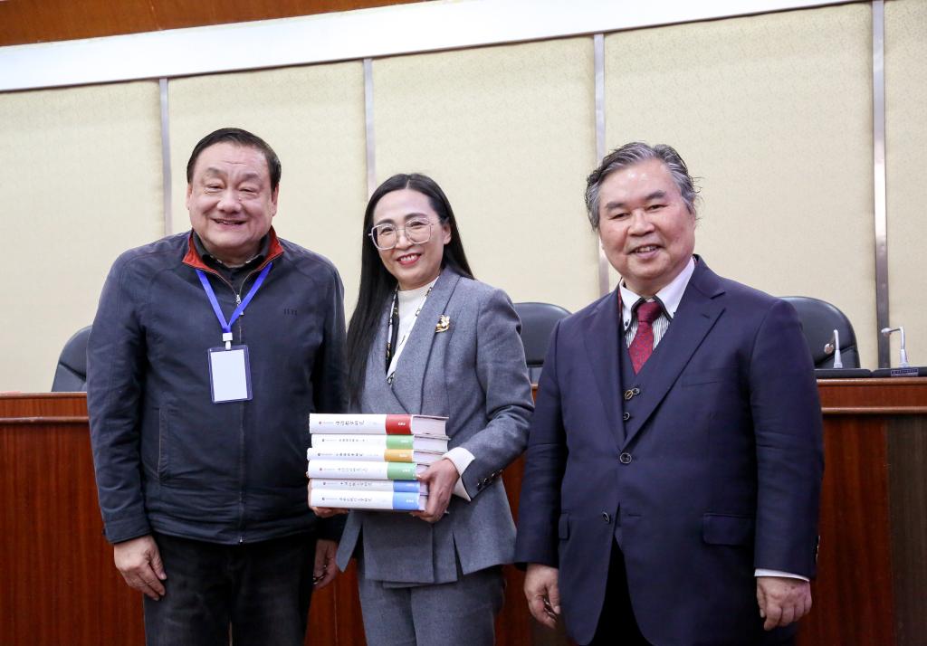 论坛结束前还举行了赠书仪式,中国人民大学张威教授还代表《日本学研究丛书》编委会为公司赠送《日本学研究丛书》已经出版的图书,北京外国语大学徐一平教授赠送其新出版的学术著作《现代中国日语教育史》,北京大学滕军教授赠送了一套教学光盘。《日本学研究丛书》由外语教学与研究出版社出版,荟集国内外日本学研究的精粹,目前已经出版《日本近现代文学研究》《中日比较文学研究》《日语语法研究(上下)》《日语语用学研究》《日语教学研究》6卷。该系列丛书以其权威性、系统性、前沿性备受学界关注,丛书付梓发售之际,公司成为国内获齐书卷的首家高校。获赠的学术著作必将对公司日本学研究提供强有力支持。